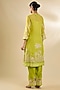 Featuring a green kurta in organza, jeni silk and cotton silk base. It is paired with pants and an inner. Complete your festive or wedding look with dangler earrings, clutch and elegant heels.