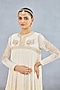 TORANI presents an ivory anarkali in muslin silk base with embroidery. Style it with a sleek low bun, adorned with fresh gajra, and a embellished potli bag for an elegant festive look.