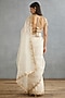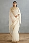 Torani presents an ivory saree in silk organza base with hand adda work, hand and dori embroidery. Style this designer saree with stud earrings, a kada, and a ring for festive occasions, showcasing style and sophistication.