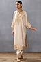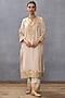 Ivory Slub Silk Printed & Embroidered Kurta Set