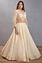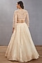 Featuring a jasmine white lehenga in silk organza base with aari embroidery. It is paired with a matching blouse and a dupatta.