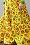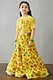 Featuring a bright yellow lehenga for girls in butterfly net, handwoven chanderi and cotton silk base. It is paired with a bralette and a jacket. Perfect wear for weddings.