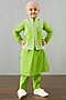 Featuring a leaf green kurta in raw silk base. It is paired with matching pants and a bandi jacket.