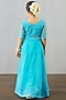 Featuring a raspberry blue skirt in net and organza base. It is paired with a matching blouse and a dupatta.