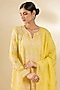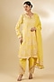 Featuring a light yellow kurta in silk crepe organza, jeni silk and cotton silk base. It is paired with pants, an inner and a dupatta. Complete your festive or wedding look with dangler earrings, clutch and elegant heels.