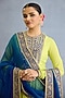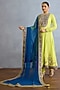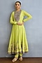 Featuring a lime green kurta in muslin silk and chinon georgette base with pearl, zari and dori embroidery. It is paired with pants and a dupatta. Accentuate it with statement jewellery and heels for a wedding or mehendi ceremony.
