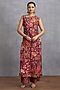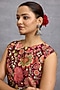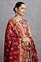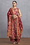 Torani presents a maroon kurta in silk crepe organza and jeni silk base with floral digital print. It is paired with pants and a dupatta. Own the spotlight in block heels and dangler earrings that amplify your look, perfect for festive ceremonies.
