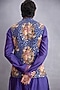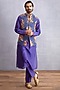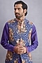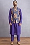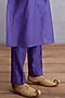 Featuring an amethyst purple bundi jacket in handwoven chanderi and pure cotton voile base with print. It is paired with pants and a kurta. Perfect wear for a festive occasion or pooja ceremony.