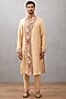 Featuring a beige kurta in cotton voile and handwoven chanderi base with pintucks detail and digital print. It is paired with pants. Perfect wear for festive occasions.