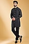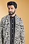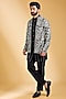 Featuring a black and ivory bomber jacket in jeni silk and silk crepe organza base. It is paired with a kurta and pants. Style it with kolhapuri sandals for a festive occasion, sangeet or engagement wear.