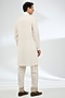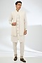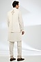 Featuring an ivory bundi jacket in jeni silk and muslin silk base. It is paired with a kurta and pants. Style it with an embroidered loafers for a festive occasion wedding, engagement or sangeet ceremony, exuding charm and elegance.