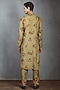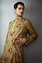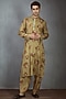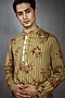 Featuring a yellow kurta in chanderi and cotton silk base with printed stripes. It is paired with matching pants.