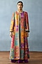 Featuring a multi-colored jacket in cotton jacquard and south silk slub base with digital print. It is paired with a bralette and sharara pants. Accentuate it with a polki stud earrings, a potli bag and block heels for festive occasion, sangeet or cultural events.