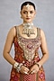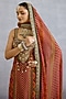 Torani presents a multi-colored kurta in dola silk and organza base with floral and chevron print, including embellishments. It is paired with straight pants and a dupatta. Style this kurta set with kundan earrings, juttis and a clutch for festive occasion, sangeet or cultural events.