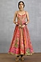 Torani presents a multi-colored anarkali in dola silk base with patola motif print. It is paired with churidar pants and an organza dupatta. Style this set, with kundan earrings, juttis and a clutch for festive occasion, haldi, sangeet or cultural events.