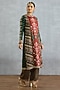 Torani presents a multi-colored kurta in dola silk and organza base with patola motif print. It is paired with straight pants and a dupatta. Style this kurta set with kundan earrings, juttis and a clutch for festive occasion, sangeet or cultural events.