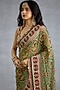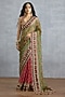 Torani presents a multi-colored saree in georgette base with digital print, pearl, beads, mirror and sequins hand embroidery. Style this saree, with a blouse, kundan earrings, block heels and a clutch for a sangeet, wedding or engagement ceremonies.