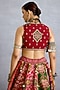Torani presents a multi-colored lehenga in jeni silk, dola silk, cotton silk and organza base with chevron print, pearl, beads and ghungroo embroidery. It is paired with a blouse and a dupatta having tassels detail. Style this lehenga set with kundan polki jewellery, block heels and a clutch for a wedding, sangeet or engagement ceremonies.