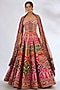 Featuring a multi-colored lehenga in silk base with hand embroidery. It is paired with an embroidered blouse and an organza embroidered dupatta. Accentuate the designer lehenga with kundan polki or gold jewellery, embellished heels and a potli bag for a bridal look, Perfect wear for your wedding or engagement ceremony.