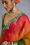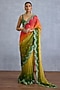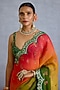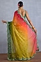 Torani presents a multi-colored saree in viscose organza base with boota print and scallop border. Style it with a blouse, statement earrings, embroidered kolhapuri heels and a sleek clutch for festive gatherings or wedding functions.