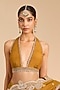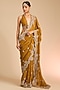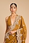 Featuring an ochre saree in georgette base. Style it with a blouse, statement earrings and heels for a festive occasion, wedding or engagement ceremony.