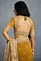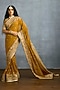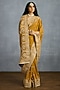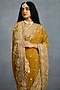 TORANI presents an ochre saree in jeni silk and georgette base with embroidery. Style it with a sleek low bun, adorned with fresh gajra, and a embellished potli bag for an elegant festive look.