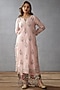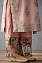 Featuring an old rose kurta in handwoven chanderi base with multi-colored aari embroidery and small bootas. It is paired with matching cotton voile pants and a cotton kota tasseled dupatta having hand block print.