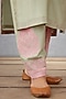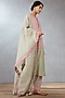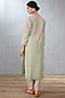 Featuring an old rose and sage green kurta in handwoven chanderi base with dori hand embroidery and shell details on the yoke. It is paired with matching cotton voile pants and a silk organza dupatta.