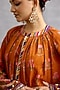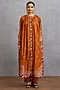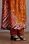 Torani presents an orange and purple kurta in dola silk base with chintz floral digital print. It is paired with pants. Own the spotlight in block heels and dangler earrings that amplify your look, perfect for festive ceremonies.