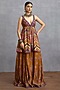 Torani presents an orange and purple peplum kurta in dola silk base with chintz motif digital print. It is paired with sharara pants and a silk crepe organza dupatta. Own the spotlight in block heels and dangler earrings that amplify your look, perfect for sangeet ceremonies.