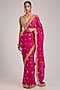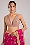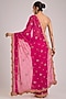 Featuring a pink saree in georgette base with dabka, badla and cutdana embroidery. It is paired with a jeni silk blouse and an underskirt. Accentuate it with statement jewellery and heels, perfect for festive occasion, wedding or engagement ceremony.