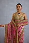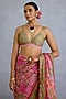 Torani presents a pink and green bralette in chanderi base digital chintz print. Style it with a saree, statement earrings, embroidered kolhapuri heels and a sleek clutch for festive gatherings or wedding functions.