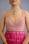 Featuring a pink anarkali in muslin silk and chinon georgette base with pearl, zari and dori hand embroidery. It is paired with churidar pants and a dupatta. Accentuate it with statement jewellery and heels for a sangeet or wedding ceremony.