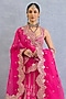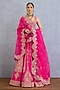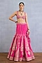 Featuring a pink lehenga in jeni silk and organza base with embroidery. It is paired with a purple embroidered blouse and a blue embroidered dupatta. Accentuate it with kundan polki or gold jewellery, embellished heels and a potli bag for a bridal look, Perfect wear for your wedding or engagement ceremony.