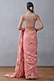 Featuring a pink saree in organza base with embroidery. Style it with an embellished blouse, polki stud earrings and block heels for weddings or engagement ceremonies.