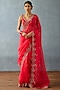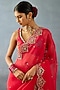 Featuring a pink saree in organza base with embroidery. Accentuate it with a blouse, statement earrings and block heels for a festive occasion or wedding ceremony.