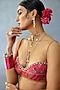 Featuring a pink lehenga in organza and jeni silk base with print and embroidery. It is paired with a blouse and a dupatta. Accentuate it with statement jewellery and heels for festive occasions or wedding ceremony.