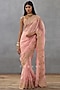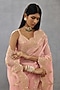 Torani presents a pink saree in silk organza and cotton silk base with hand adda work, hand and dori embroidery. Style this designer saree with stud earrings, a kada, and a ring for festive occasions, showcasing style and sophistication.