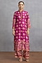 Torani presents a plum kurta in dola silk base with floral motifs detail. It is paired with pants. Own the spotlight in block heels and dangler earrings that amplify your look, perfect for festive ceremonies.