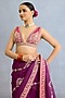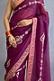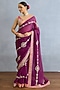 Featuring a purple saree in georgette base with pearl and jeni silk border detail, including badla, dabka and dori embroidery. It is paired with a blouse and an underskirt. Accentuate it with statement jewellery and heels for festive occasions or weddings.