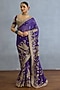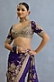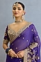 Featuring a purple saree in georgette base with jeni silk border detail, including pearl, badla, dabka, zari and boota embroidery. It is paired with a blouse and an underskirt. Accentuate it with statement jewellery and heels for festive occasions or weddings.