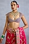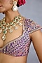 Featuring a purple blouse in jeni silk base with cap sleeves and embroidery. Style it with a saree, statement jewellery and heels for a festive occasion, wedding or engagement ceremony.