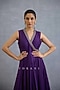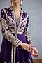 Featuring a purple jacket in muslin silk and georgette base with zari embroidery. It is paired with an embroidered dress. Accentuate it with kundan polki jewellery, embellished heels and a potli bag for a complete look, Perfect wear for your wedding, sangeet or engagement ceremony.