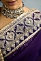 Featuring a purple saree in organza base with zari embroidery. Accentuate it with a blouse, kundan earrings, block heels and a potli bag for a complete look, Perfect wear for festive occasions, diwali parties or sangeet ceremony.