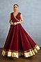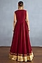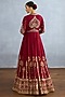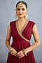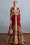 TORANI presents a red jacket in georgette and muslin silk base with embroidery. It is paired with a dress. Style it with a sleek low bun, adorned with fresh gajra, and a embellished potli bag for an elegant festive look.