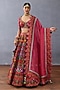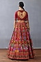 Featuring a red lehenga in organza and jeni silk base with digital print, including flora and fauna motif detail. It is paired with a blouse and a dupatta. Accentuate it with statement jewellery and heels for festive occasions or wedding ceremony.
