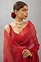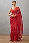 Featuring a crimson red saree in silk organza base with aari embroidery. Accentuate it with statement jewellery and heels for a festive occasion, wedding or engagement ceremony.