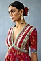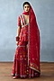 Featuring a red kurta in silk slub base with gota embroidery. It is paired with gathered sharara pants and a dupatta. Accentuate it with statement jewellery and heels for festive occasions or wedding ceremony.