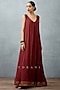 Featuring a red dress in slub silk base with bhagalpuri print and leheriya border.