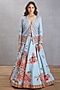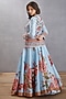 Featuring a sea blue lehenga in handwoven chanderi and cotton silk base with digital print. It is paired with a bralette and a chintz printed jacket. Accentuate with statement earrings and heels for a complete look, ideal for a wedding, sangeet or engagement ceremonies.